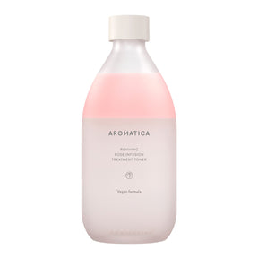 Experimenta la frescura del Tónico Facial Reviving Infusion, con una fórmula orgánica y enriquecida con agua y aceite esencial de rosa.