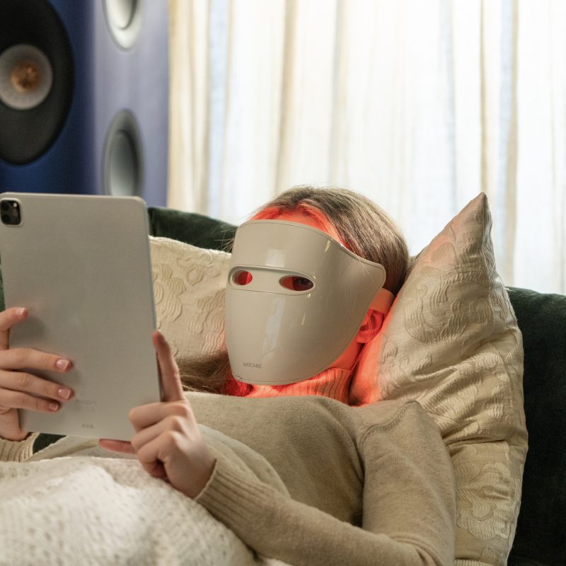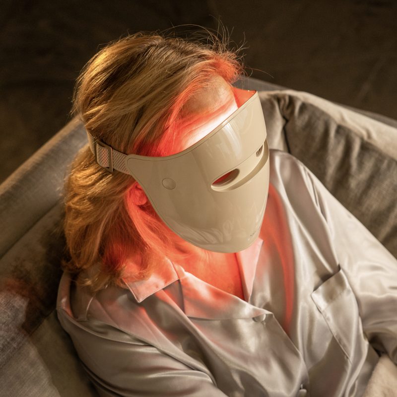 La Máscara de belleza rejuvenecedora con terapia de luz Sunstone combina cuatro tipos de ondas de luz: luz roja profunda, luz roja, luz infrarroja cercana y luz ámbar dorada.