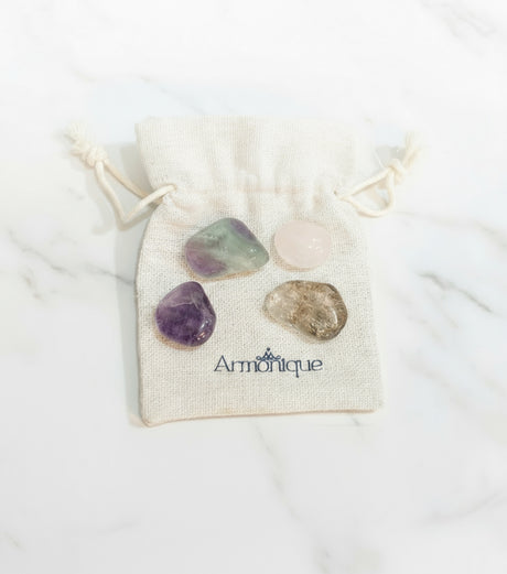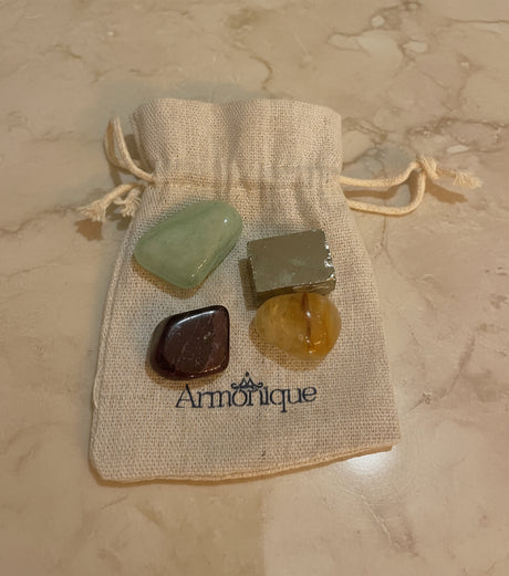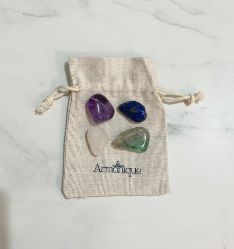 Each pack includes authentic natural stones, selected for their purity and energy frequency.