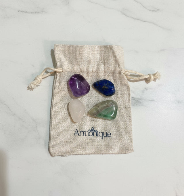 With the Spiritual Connection Pack, connect with your spirituality and emotions. It contains amethyst, lapis lazuli, white quartz, and green fluorite to promote peace, communication, clarity, and balance in your life. Express your essence with these crystals!