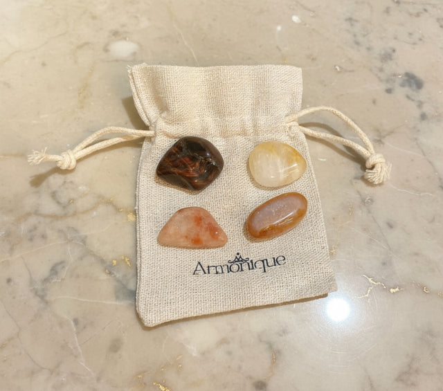 Discover a new level of confidence and vitality with our Confidence and Vitality Pack. Created with the powerful energy of sunstone, bull's eye, citrine, and agate, this pack will help you feel more confident and energized. Experience life to the fullest with our crystals!